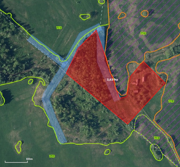 Tiek pārdots atdalāms zemes gabals 2.6 ha platībā (tai skaitā ēkas), kas tiks nodalīts no zemes vienības ar kadastra apzīmējumu 7046 008 0001, atsevišķā īpašumā ar vienu zemes vienību.
