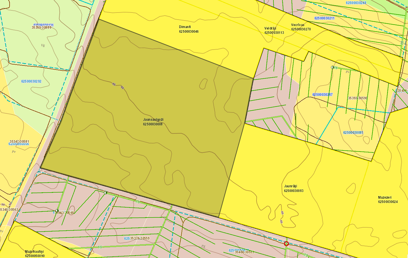 Lauksaimniecības zemes kvalitātes novērtējums ballēs: 45